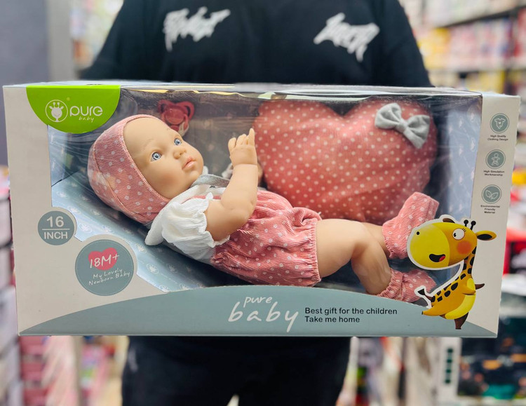این عروسک یک نینی تماما سیلیکونی از برند وارداتی pure baby با قدی حدود 40 سانت بوده که قابلیت حمام بردن نیز دارد. هم چنین این عروسک دارای جعبه ای زیبا و شکیل مناسب هدیه به عزیزان شماست.