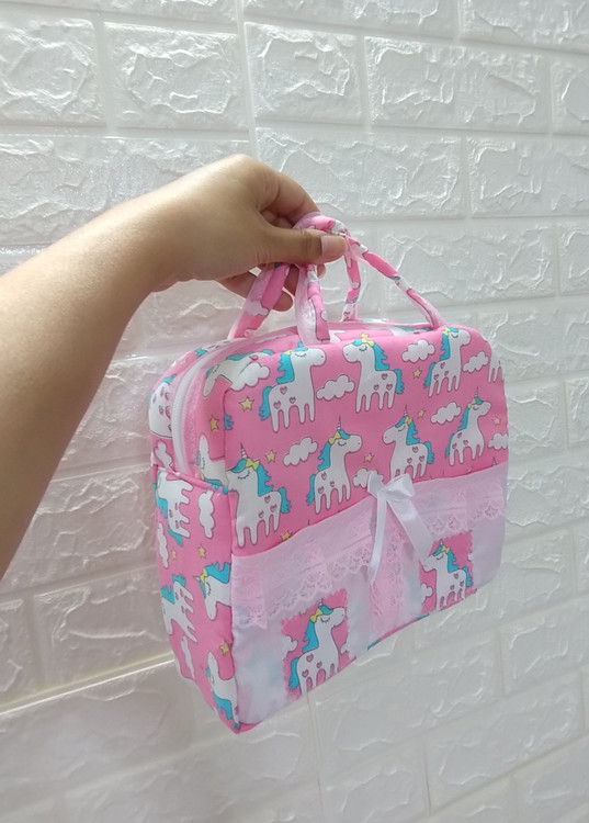 این محصول یک ساک زیبا با دو جیب در جلو، مخصوص قراردادن لوازم عروسکهاست.
