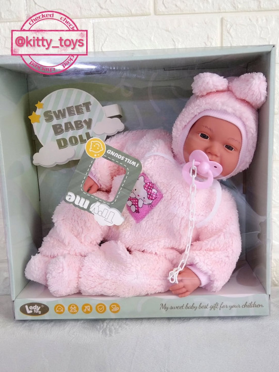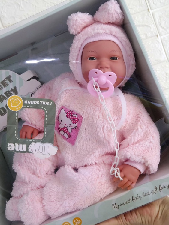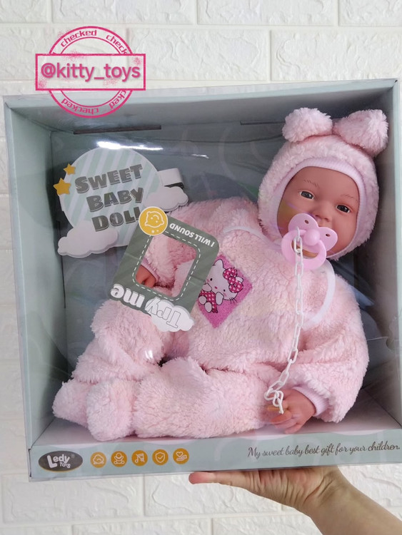 عروسک نوزاد بدن پنبه سنسوردار 45 سانتی با ست لباس تدی کپی