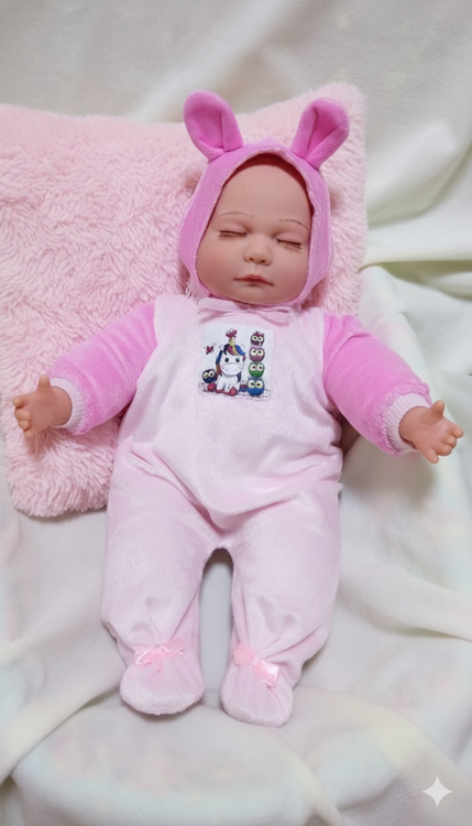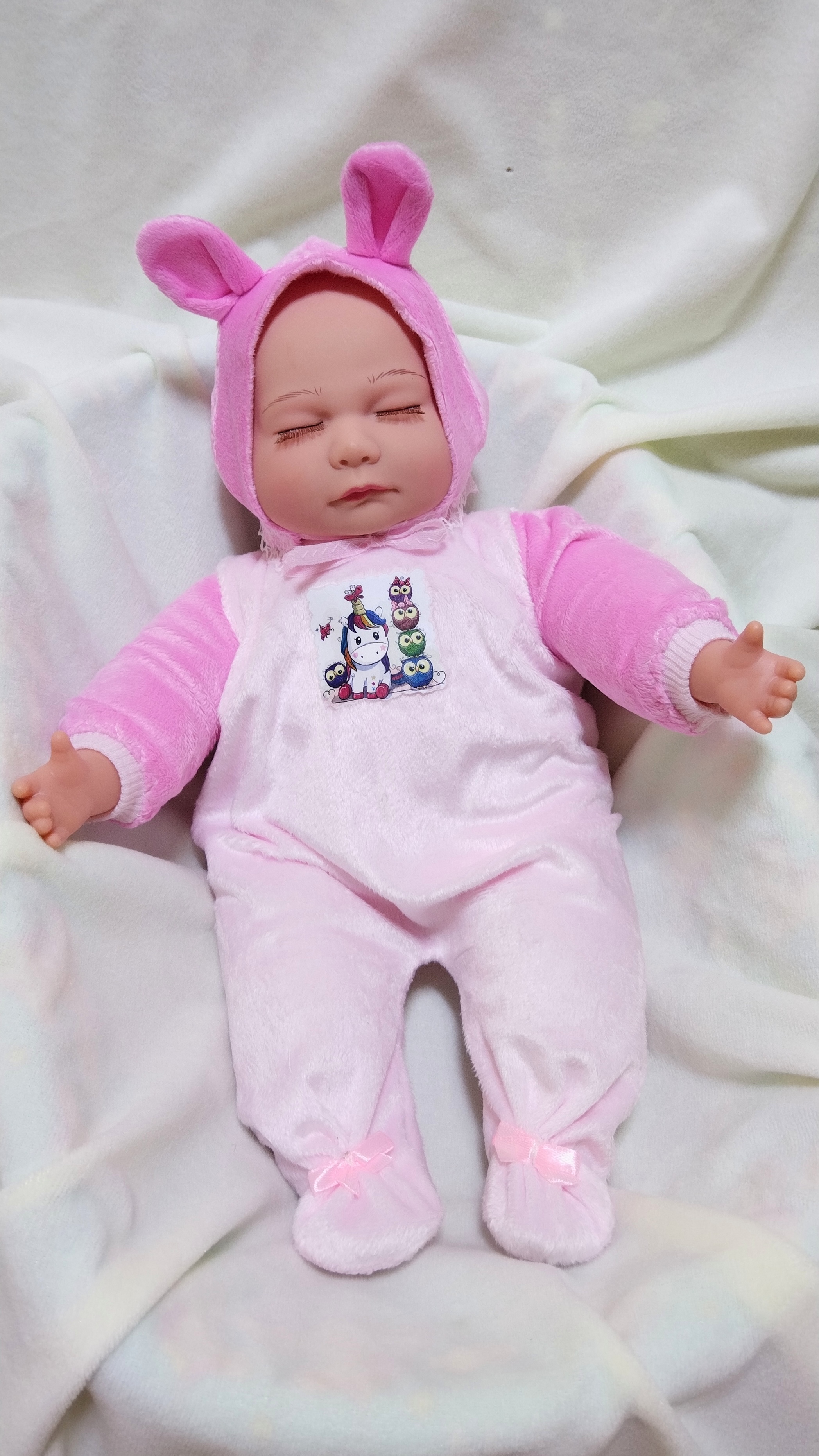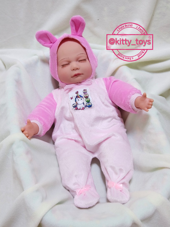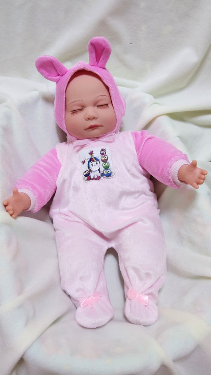 این محصول یک عروسک نوزادخواب زیبای بدن پنبه با قد حدود 38 سانت میباشد. جنس صورت و دست و پاهای عروسک از قسمت مچ سیلیکونی فشرده یا سفت و بدنش پنبه است.